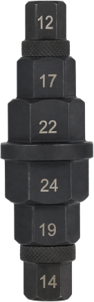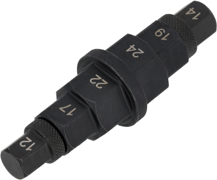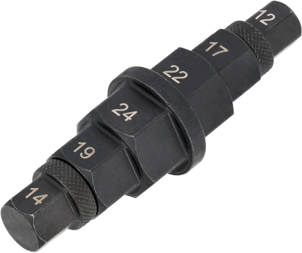 - Doskonałe dopasowanie - 6 rozmiarów w jednym narzędziu, idealnie pasujących do osi motocykli najpopularniejszych marek.