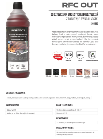 For cleaning facades, ceramic, concrete, bituminous, metal roof tiles, roofing felt, facades, joints, gaps, balconies, terraces, stairs, vertical and horizontal surfaces, gravestones, lower parts of vehicles from carbonaceous pollutants (soot), petroleum-based contaminants, organic dirt resulting from decay processes, road grime, sediment from car brake pads.