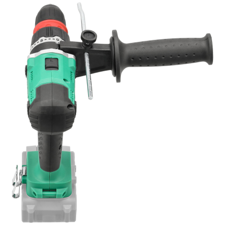 Accessories included: additional handle, drill depth stop, belt clip, keyless chuck, eccentric tool holder, angle adapter