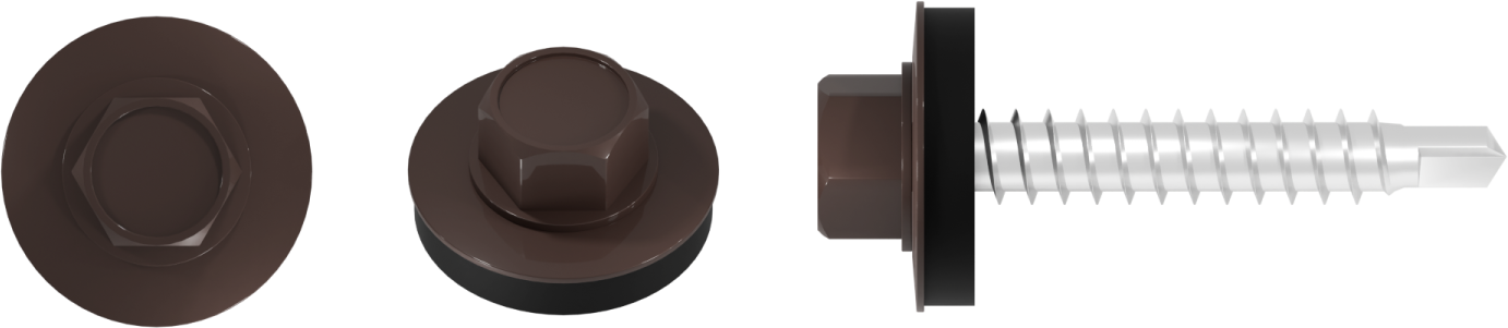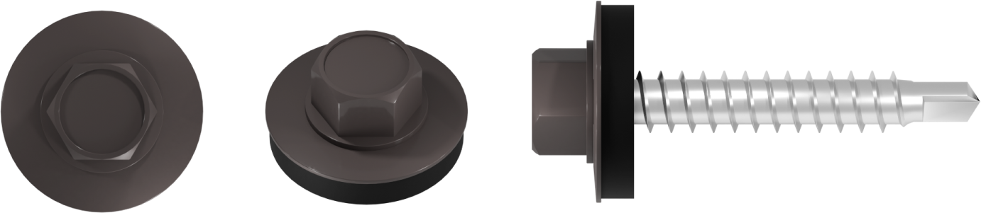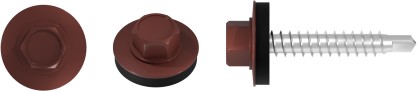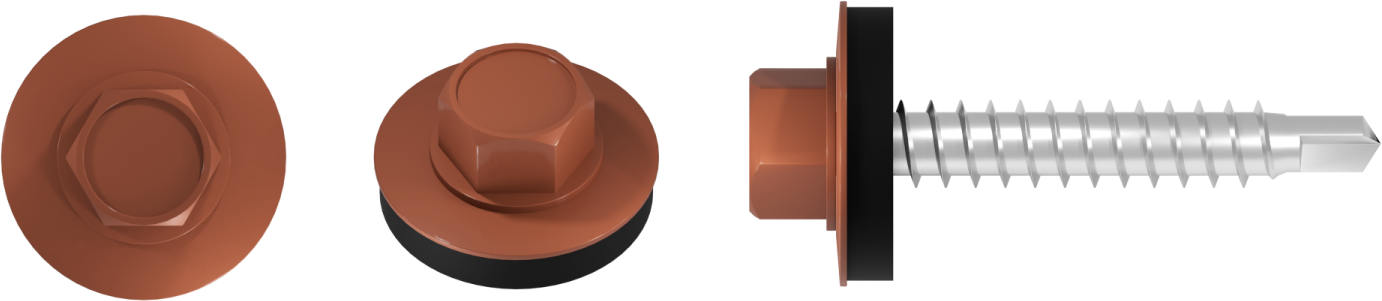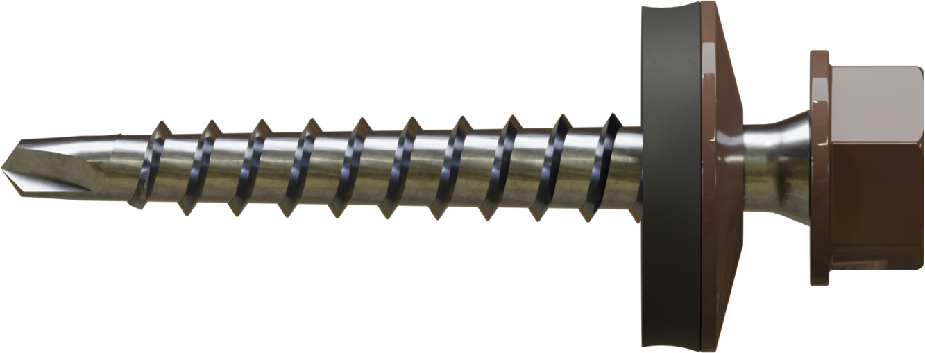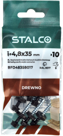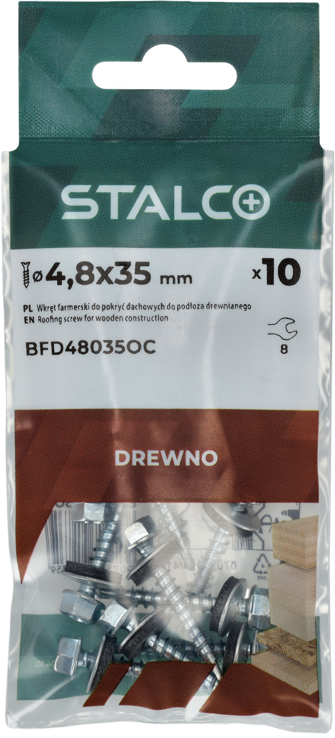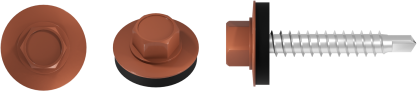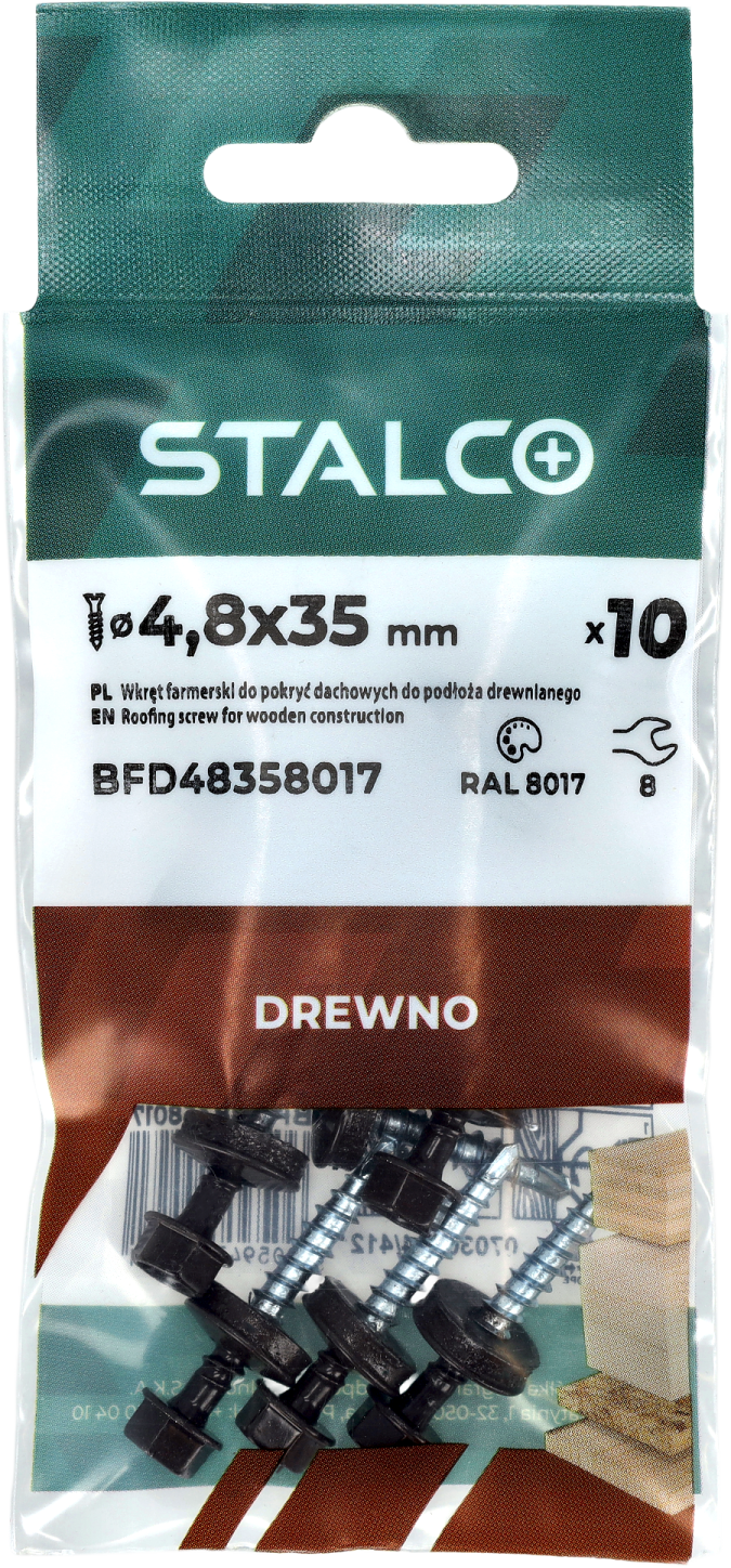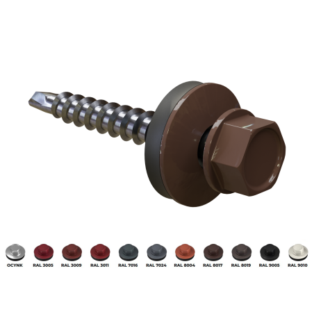 Wkręt farmerski do mocowania blachy do podłoża drewnianego to produkt przydatny przy pracach budowlanych i dekarskich. Można wykorzystać go również do prac wykończeniowych, opierzenia dachu, a także drobnych napraw. Sprawdza się również przy mocowaniu blach elewacyjnych i osłonowych. Ostre wiertło ze zredukowanym punktem wiercącym umożliwia szybki montaż, wykonuje niewielki otwór w blasze, co przekłada się na lepszą szczelność połączenia. Podkładka z uszczelką EPDM, odporną na działanie warunków atmosferycznych skutecznie chroni miejsce montażu przed wilgocią. Precyzyjnie wykonany łeb sześciokątny gwarantuje stabilne osadzenie w nasadce, co zwiększa komfort pracy. Wkręty o średnicy 4,8 mm dostępne są w różnych długościach, a możliwość malowania łba na dowolny kolor z palety RAL pozwala dopasować go do kolorystyki blachodachówek i blach wykończeniowych, zapewniając estetyczne i spójne wykończenie oraz dodatkową ochronę przed korozją.
