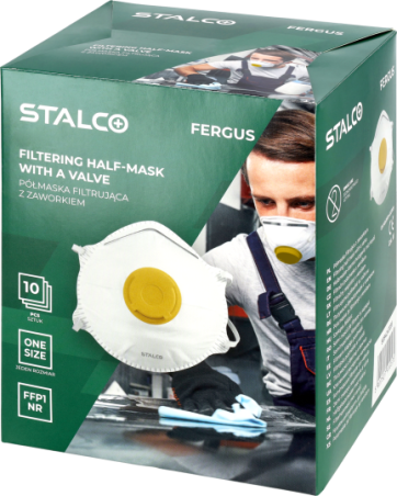 Półmaska przeciwpyłowa z zaworkiem FFP1 FERGUS to funkcjonalna maska ochronna, zaprojektowana z myślą o skutecznej filtracji cząsteczek stałych i ciekłych. Jej ergonomiczna konstrukcja zapewnia wygodne dopasowanie do twarzy, a zastosowane materiały gwarantują trwałość i komfort użytkowania.
