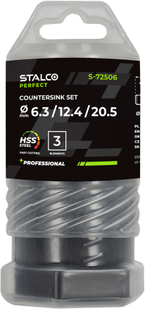 HSS Countersink Drill Set 3pcs Countersink/Chamfer/Handle STALCO PERFECT S-72506