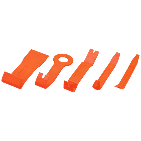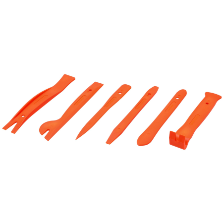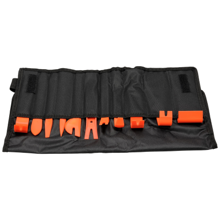 Zestaw ściągaczy przeznaczony do demontażu listew oraz tapicerki w samochodach, zestaw zawiera 11 elementów pozwalających na demontaż elementów bez ryzyka zarysowania, ściągacze wykonane z trwałego nylonu pozwalają na komfortowe i bezpieczne demontowania elementów tapicerki