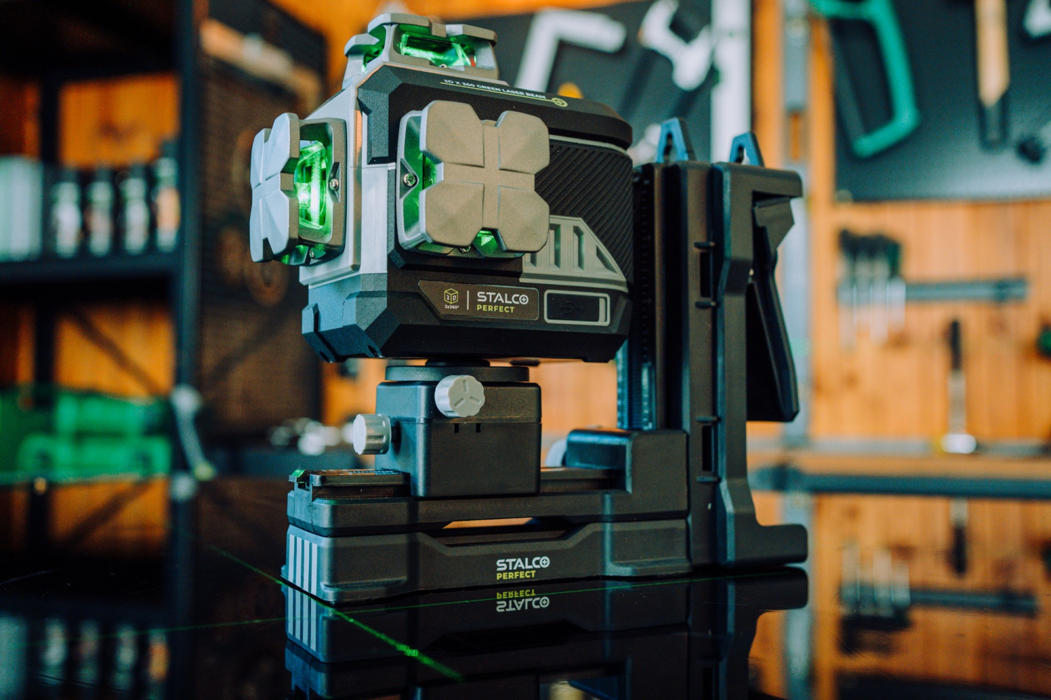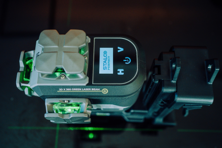 Laser 3D Stalco Perfect LLP3DG to zaawansowany model z zieloną wiązką, który łączy solidną konstrukcję i nowoczesne funkcje z najwyższą precyzją działania. Dzięki zastosowaniu materiałów takich jak kompozyt, aluminium oraz tworzywo TPR, laser cechuje się wyjątkową wytrzymałością i odpornością na trudne warunki pracy. Wygodny wyświetlacz informuje o poziomie naładowania akumulatora, trybie pracy oraz kącie nachylenia urządzenia, co znacząco zwiększa komfort użytkowania.