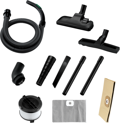 Dzięki gniazdu wyjściowemu 2000W, odkurzacz idealnie współpracuje z elektronarzędziami, oferując funkcję automatycznej synchronizacji, co pozwala na bezproblemowe odkurzanie podczas pracy z urządzeniami. Filtr HEPA skutecznie zatrzymuje drobne cząsteczki pyłów, a wskaźnik poziomu pyłu umożliwia łatwą kontrolę nad stanem napełnienia zbiornika.