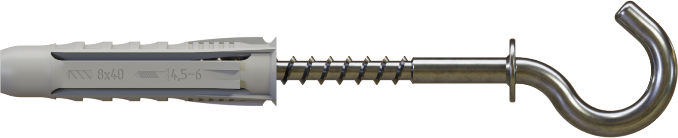 Universal plug with ceiling hook RXHS-6/4.0x36 nylon bag (50/600) STALCO PERFECT RXHS064036 śr. wiercenia: ø6mm , hak: ø4,0x36mm STALCO PERFECT RXHS-6/4,0x36