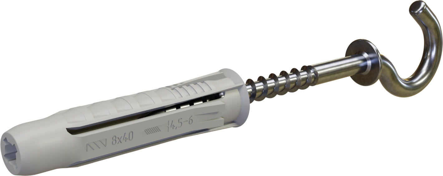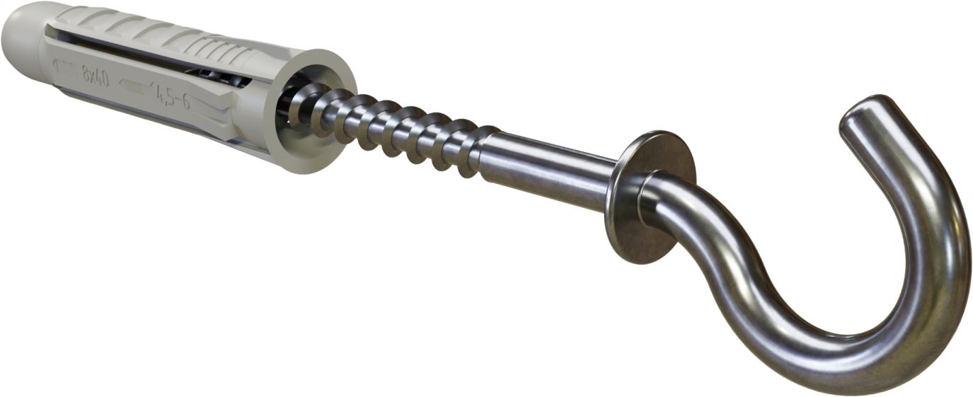 Material: polyamide sleeve, electro-galvanized steel screw with ceiling hook