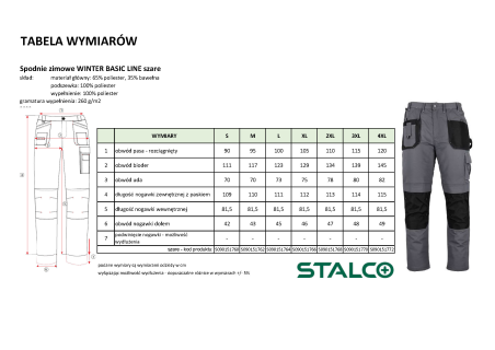 Winter Trousers BASIC LINE grey S STALCO S-51760 S szary STALCO S-51760