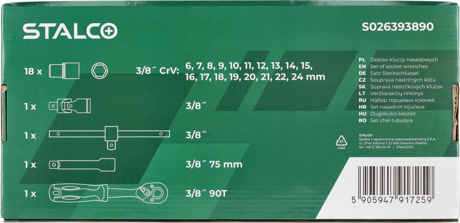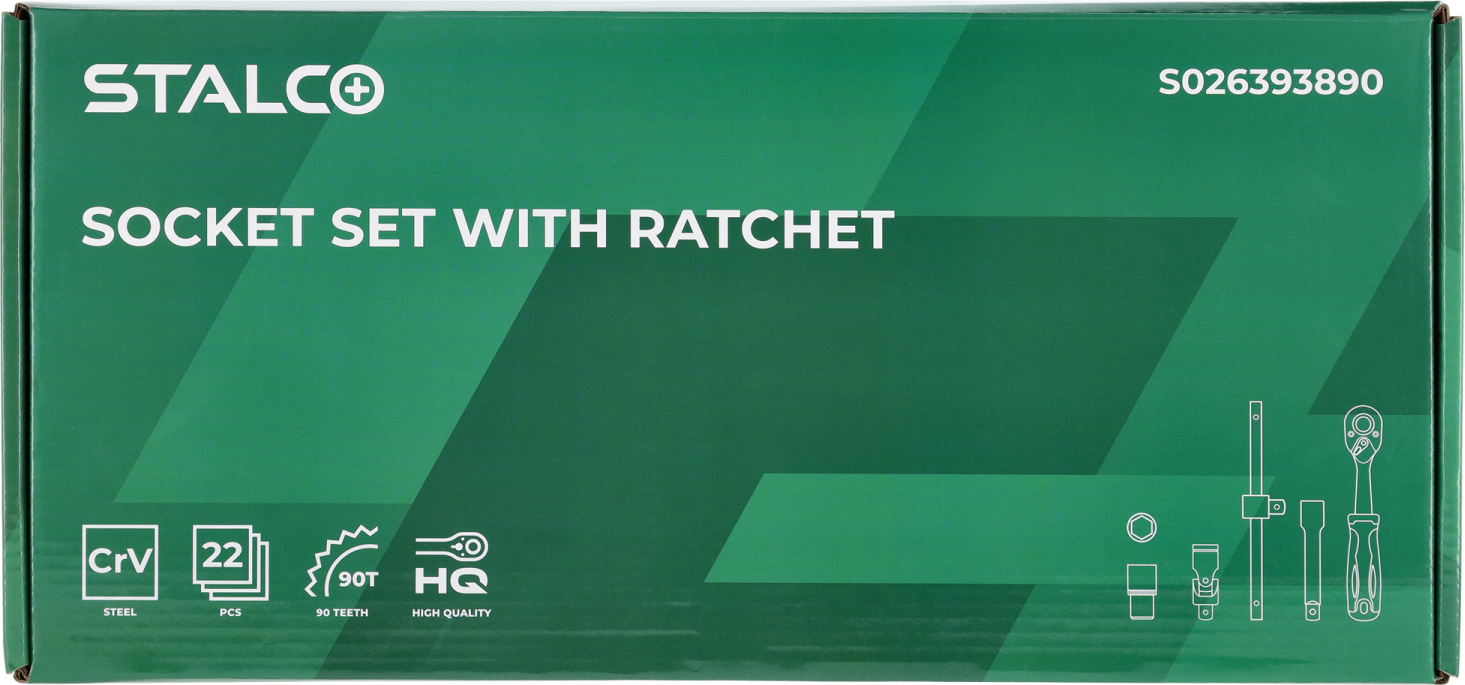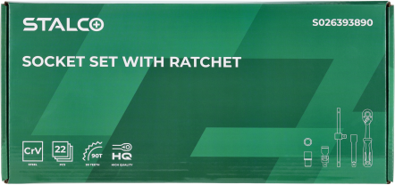 Socket Set 3/8” 6-24mm 22pcs CrV 90T STALCO STALCO S026393890