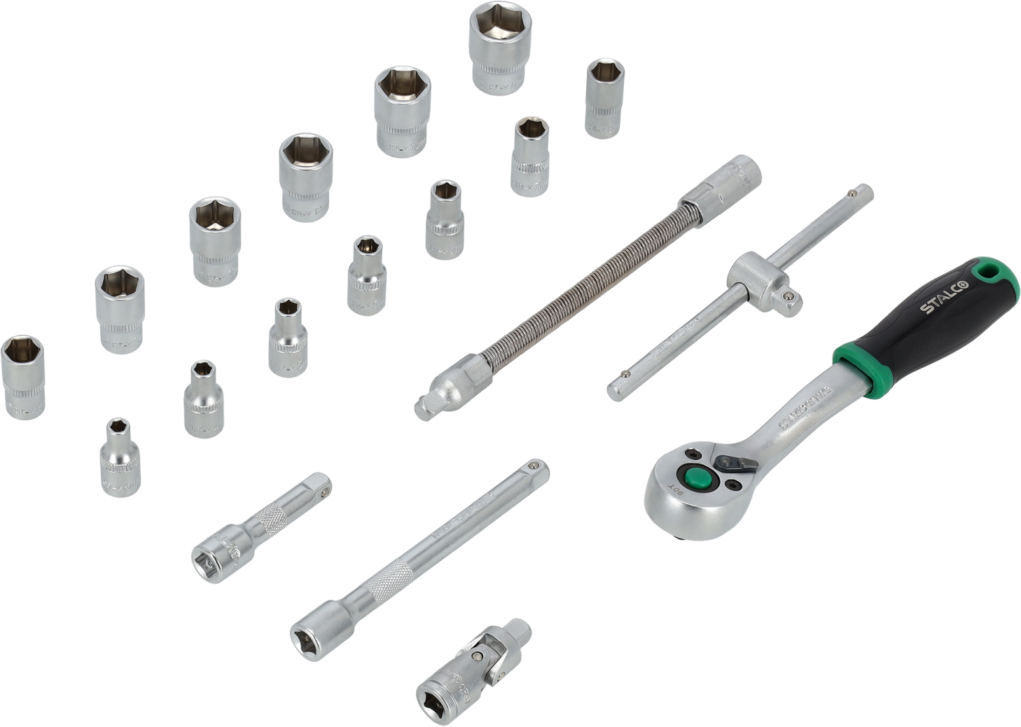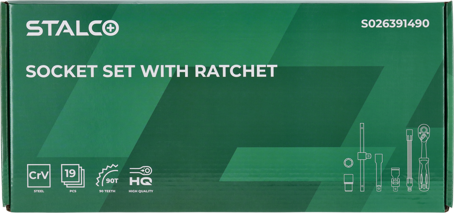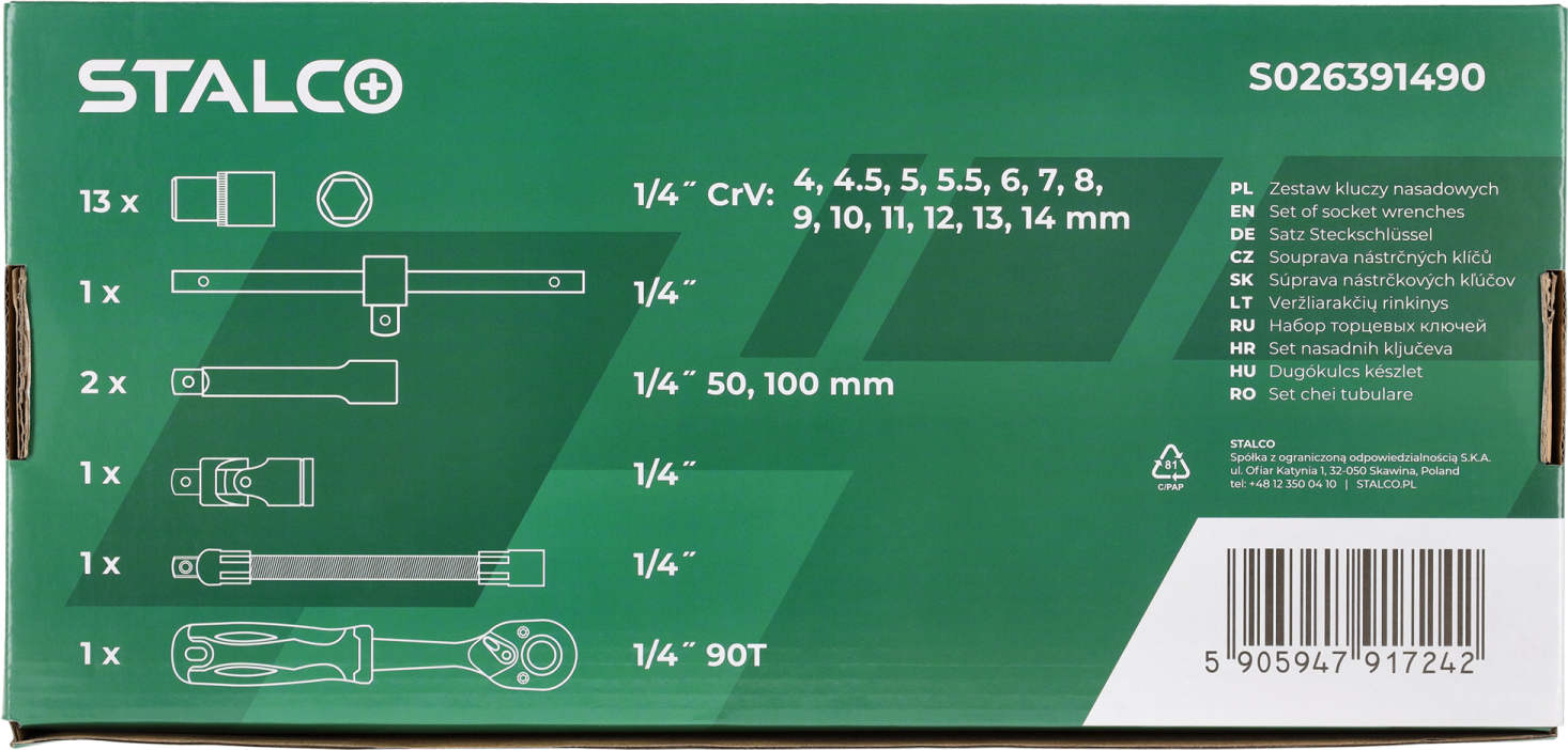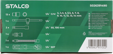 Socket Set 1/4” 4-14mm 19pcs CrV 90T STALCO STALCO S026391490