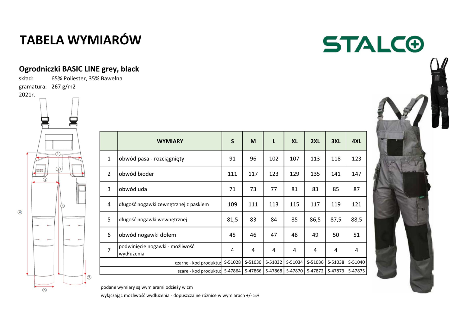 Work Bib Trousers BASIC LINE grey S-48 STALCO S-47864 S szary STALCO S-47864
