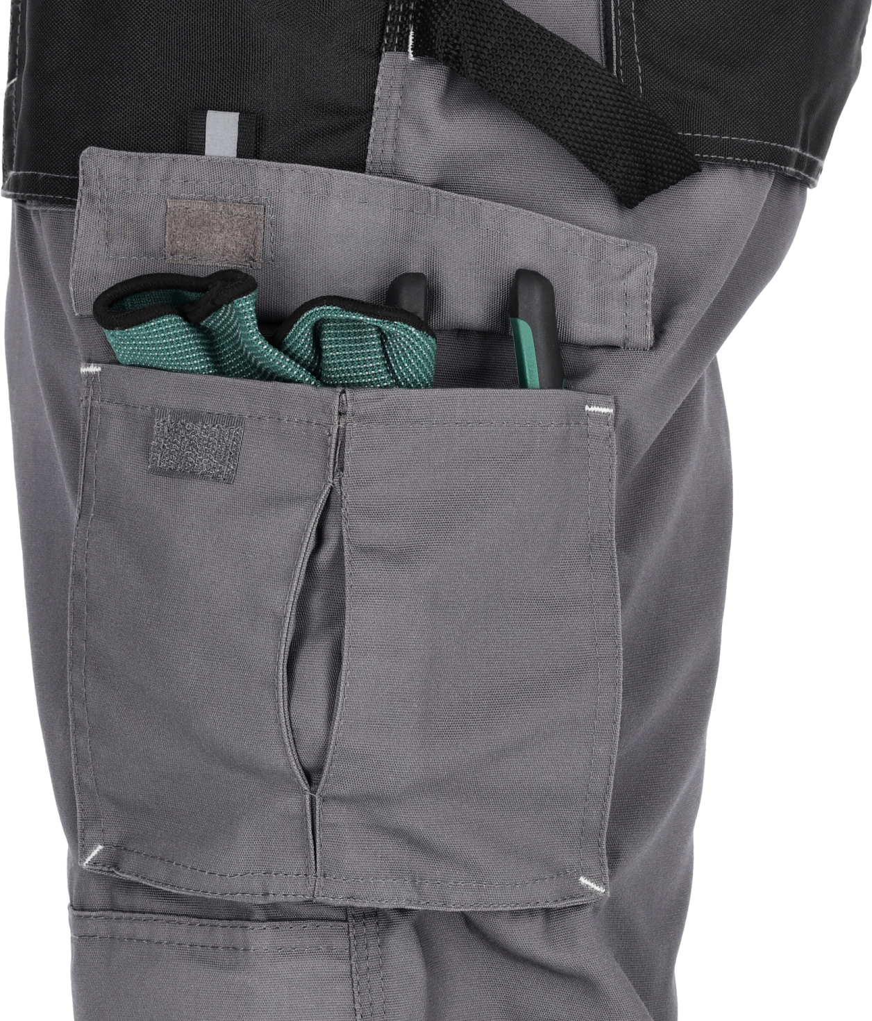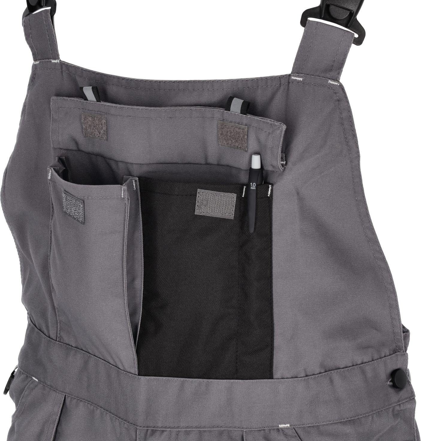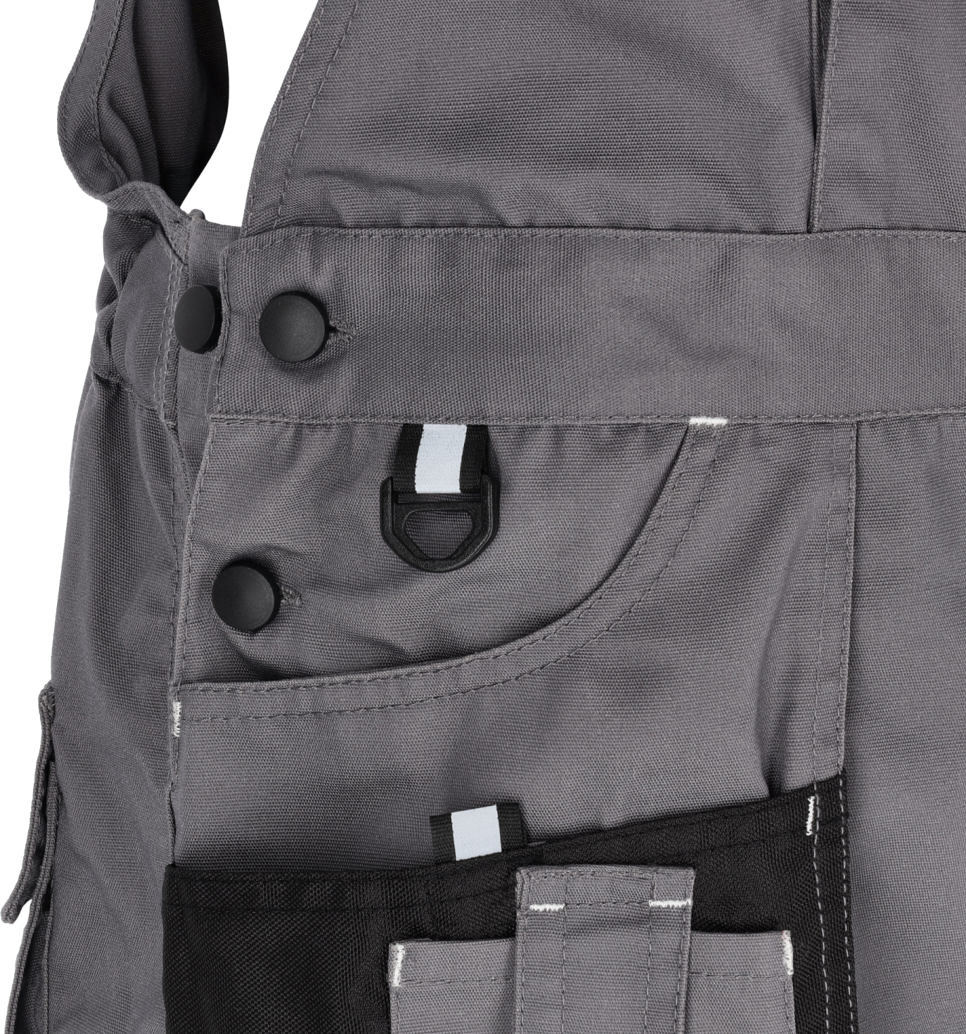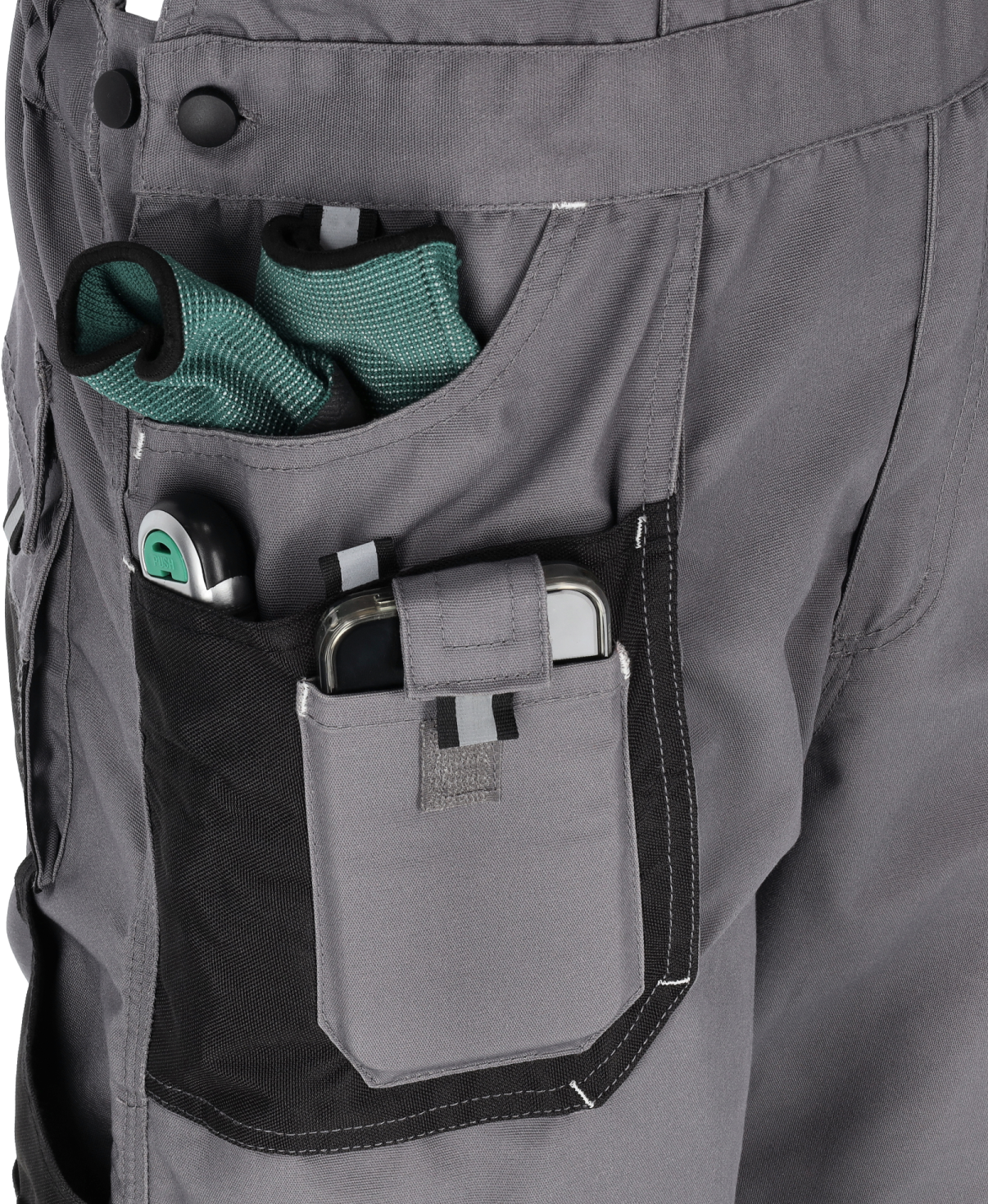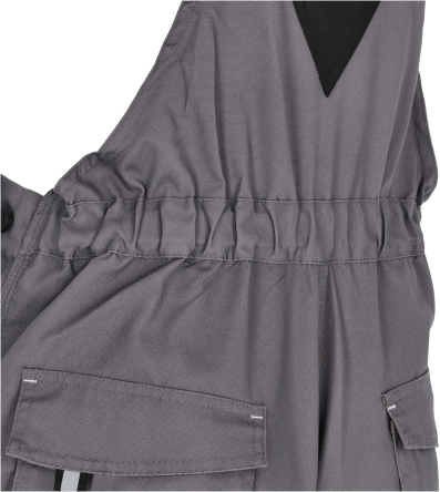Basic Line Grey triple seams great comfort of movement due to the elastic belt and shoulder straps multifunctional pockets reflective elements pockets for knee pads