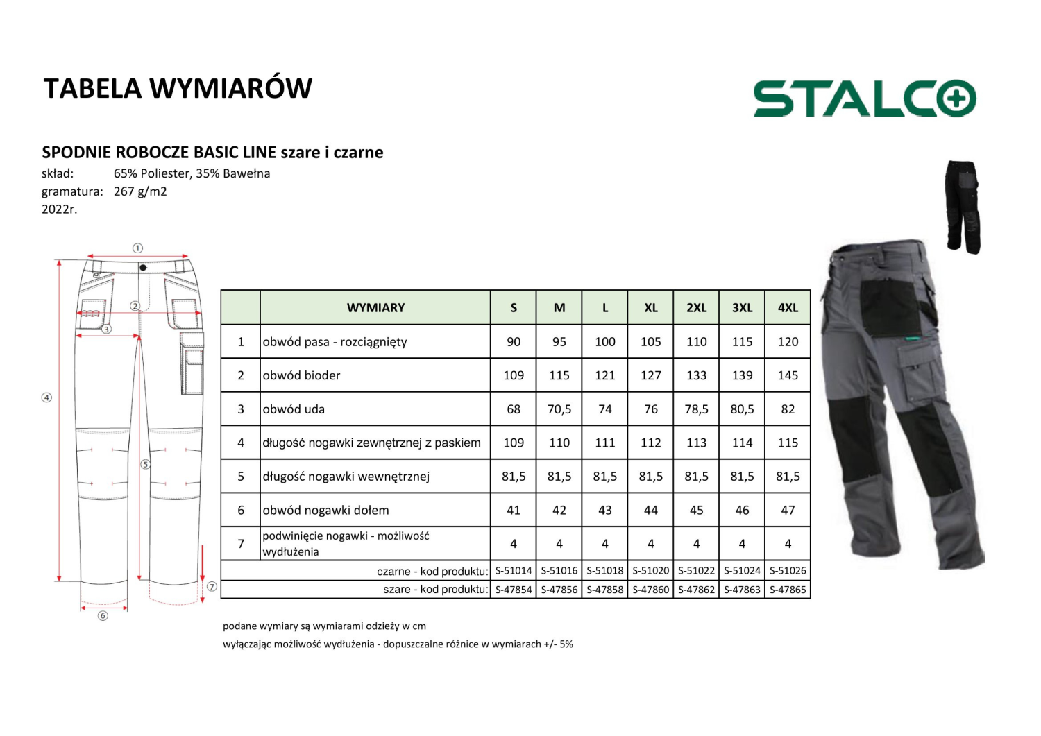 Work Trousers BASIC LINE S STALCO S-47854 S szary STALCO S-47854