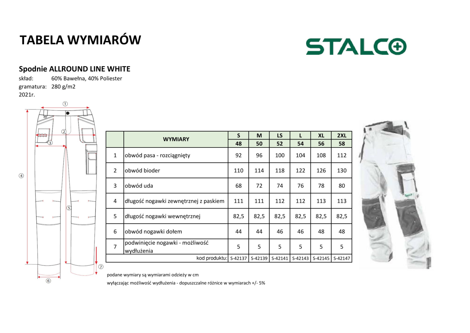Work Trousers ALLROUND LINE S STALCO S-42137 S biały STALCO S-42137