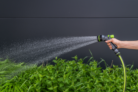 Ręczne urządzenie zraszające, regulowane o uniwersalnym zastosowaniu. W ogrodzie do podlewania i zraszania roślin.