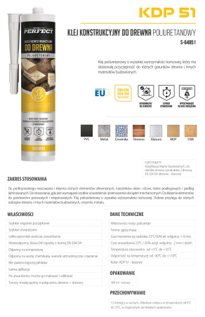 Klej konstrukcyjny poliuretanowy D4 300ml STALCO PERFECT S-64851 STALCO PERFECT S-64851