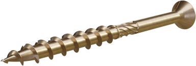 • ostre zakończenie ze specjalnym frezem rozwiercającym ułatwia rozpoczęcie wkręcania i zapewnia szybkie wgryzanie się w materiał, oraz zapobiega pękaniu i rozszczepianiu drewna