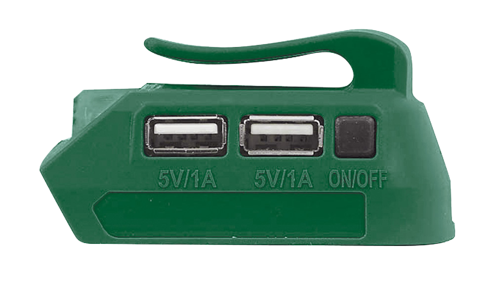 Przy pracach prowadzonych z dala od standardowych źródeł energii przydatna będzie Ładowarka USB UCS20. To urządzenie przeznaczone jest do ładowania sprzętów elektronicznych wyposażonych w wejście USB. Dwa takie gniazda umożliwiają ładowanie telefonów, laptopów, tabletów, a także innych urządzeń. Znajdujący się obok nich włącznik pozwala na łatwe rozpoczęcie i zakończenie ładowania.