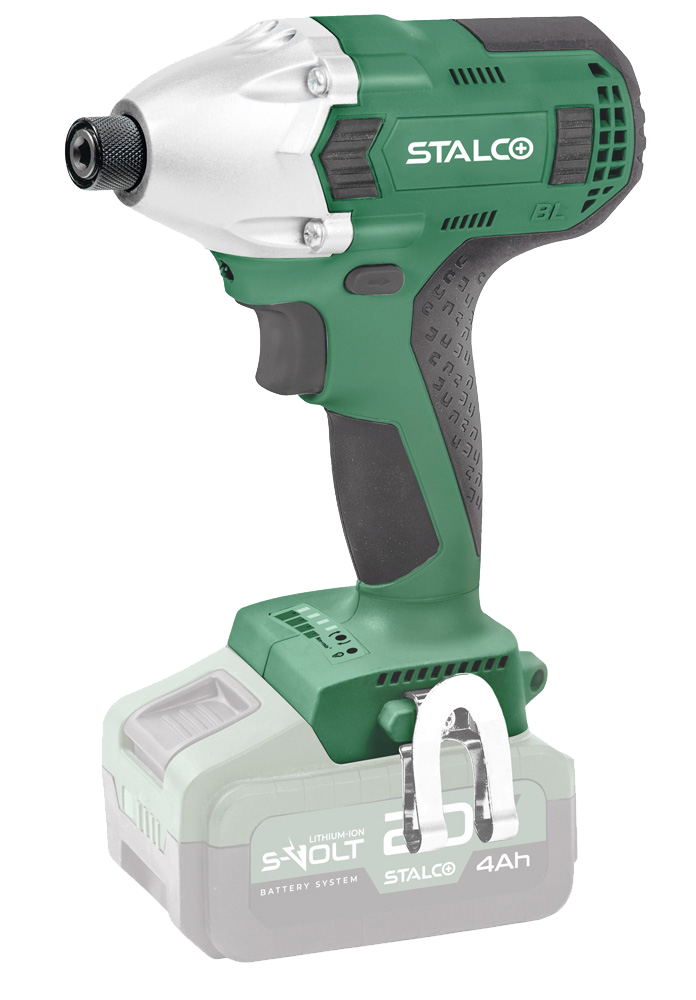 Klucz udarowy ma silnik bezszczotkowy o dużej żywotności, który dodatkowo ogranicza zużycie energii. Dzieki systemowi S-Volt, można zasilać go akumulatorami z innych urządzeń STALCO. W kluczu zastosowano funkcję dodatkowego oświetlenia z wykorzystaniem trzech diod, dlatego praca w trudnodostępnych miejscach staje się łatwiejsza. Na komfort obsługi wpływa także przejrzysty panel sterowania i automatyczne zabezpieczenie przed przegrzewaniem.