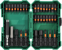 Solidne końcówki wkrętarskie to osprzęt do elektronarzędzi, który pomaga przy pracach montażowych z wykorzystaniem gwintowanych elementów złącznych. Zasada działania końcówek polega na przenoszeniu momentu obrotowego z elektronarzędzia na wkręt lub śrubę, co umożliwia ich sprawne mocowanie lub demontaż. Mogą być osadzane w standardowych uchwytach sześciokątnych ćwierć cala, a współpracują ze wkrętarkami akumulatorowymi, sieciowymi oraz narzędziami pneumatycznymi. Do ich produkcji stosuje się stal S2 hartowaną, a w niektórych modelach dodatkowo zastosowano powłoki tytanowe lub fosforanowe zwiększające odporność na ścieranie i korozję. Zastosowanie takich materiałów przekłada się na długotrwałe zachowanie właściwości roboczych.