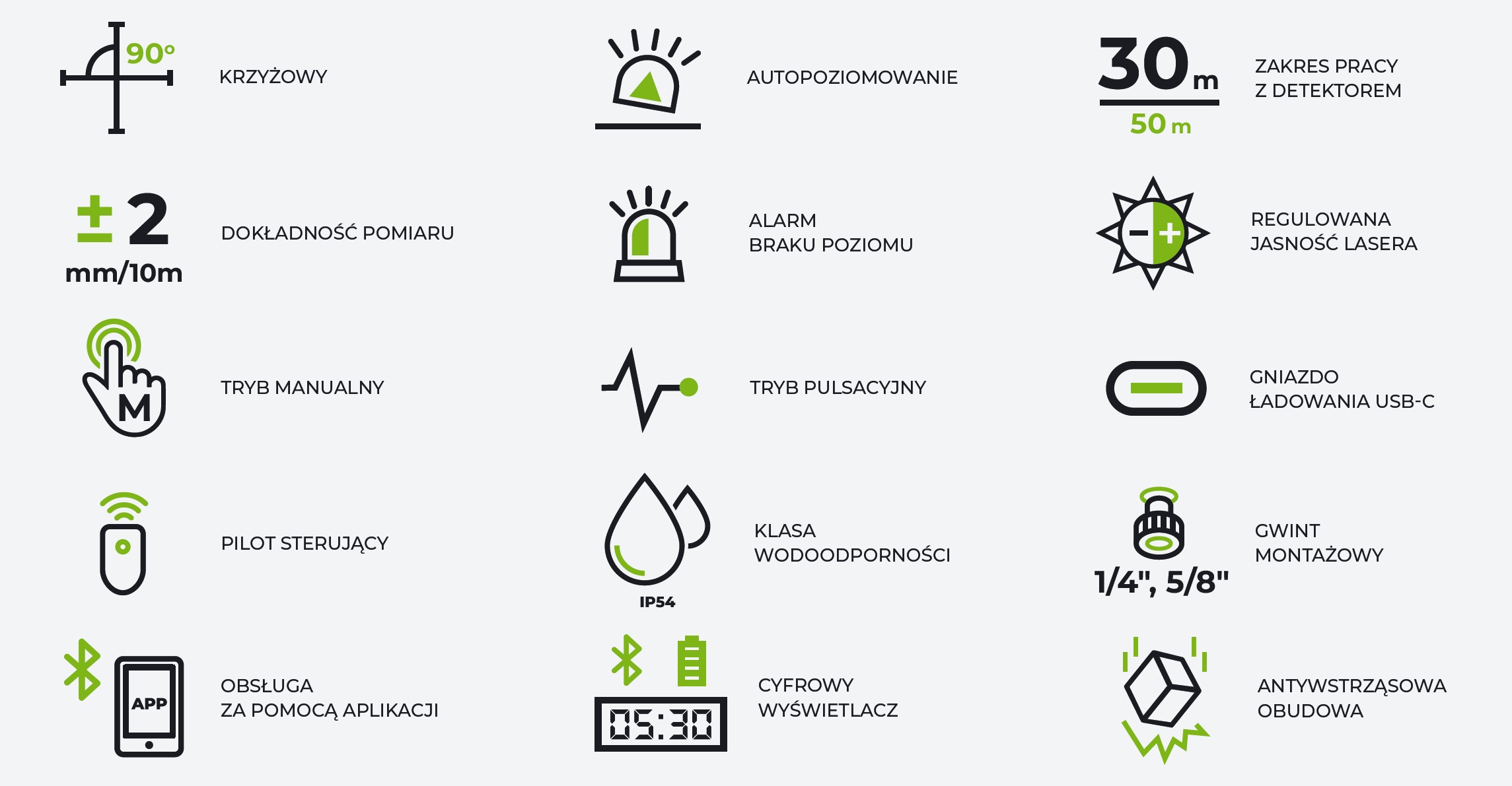 Lasery krzyżowe służą do wyznaczania idealnie prostych linii pionowych i poziomych. Mają zastosowanie tam, gdzie ważna jest precyzyjna orientacja elementów w przestrzeni.