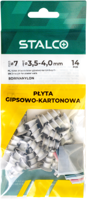 Kołek driva do ścian gipsowo-kartonowych śr. wiercenia: ø7mm , śr. wkręta: 3,5-4,0mm , 14 szt. STALCO BDRIVA-NYLON