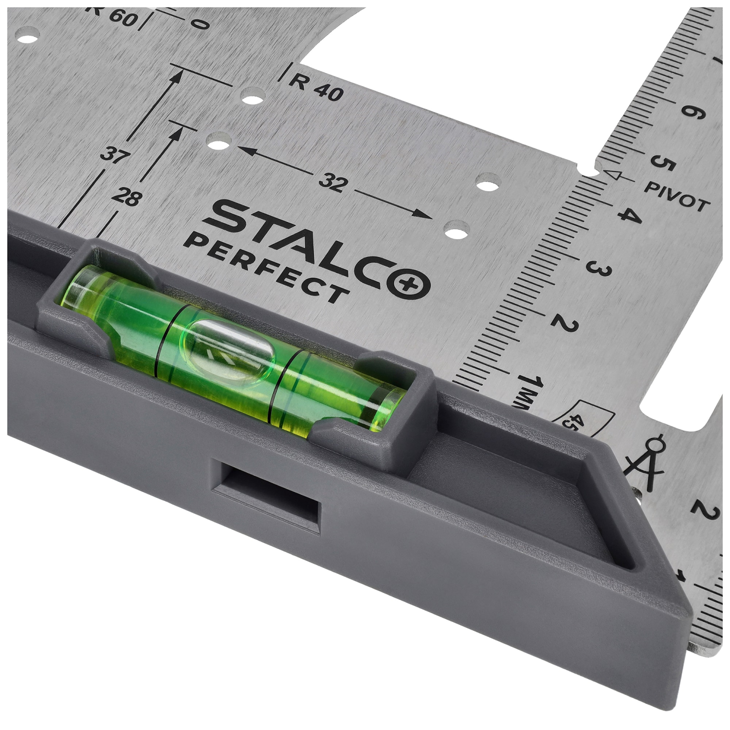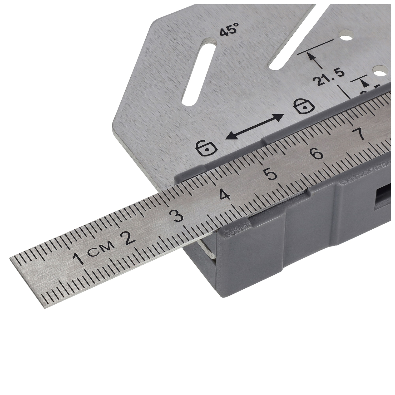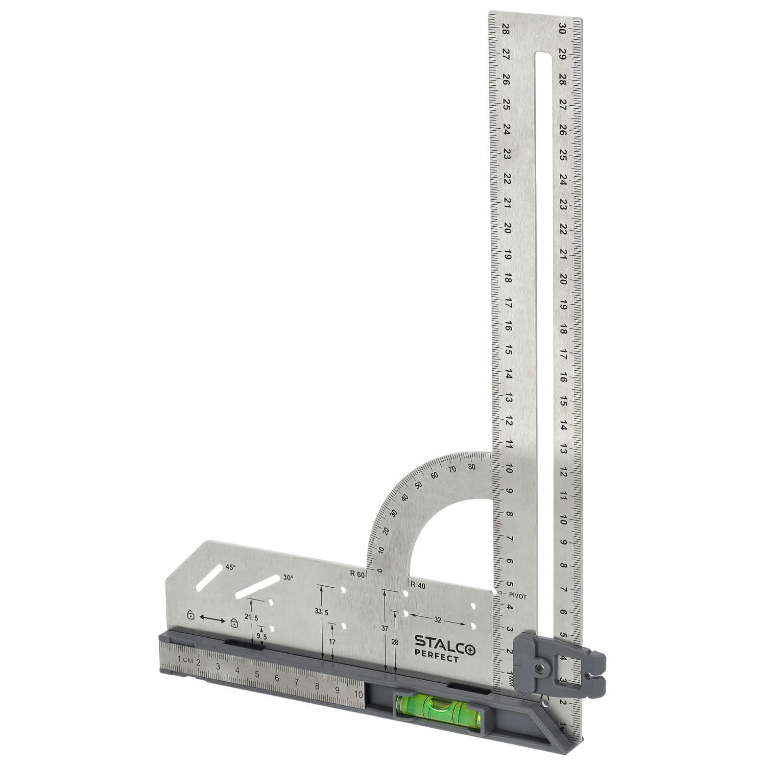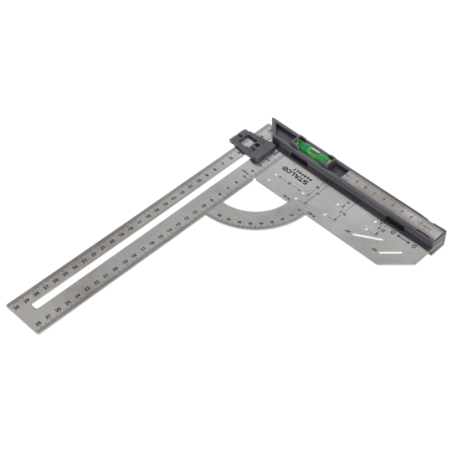 - Zaawansowany kątownik wielofunkcyjny wykonany ze stali nierdzewnej 2Cr13 o grubości 1,7 mm, przeznaczony do precyzyjnych prac pomiarowych i traserskich.
