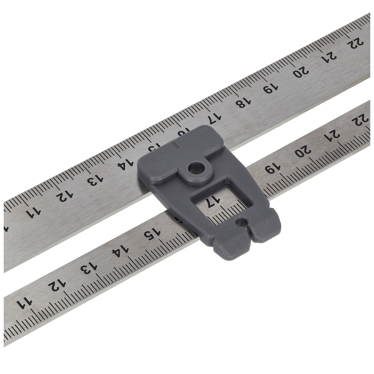 - Wyposażony w libelę, dodatkową małą linijkę oraz plastikowy suwak do wyznaczania i przenoszenia wymiarów.