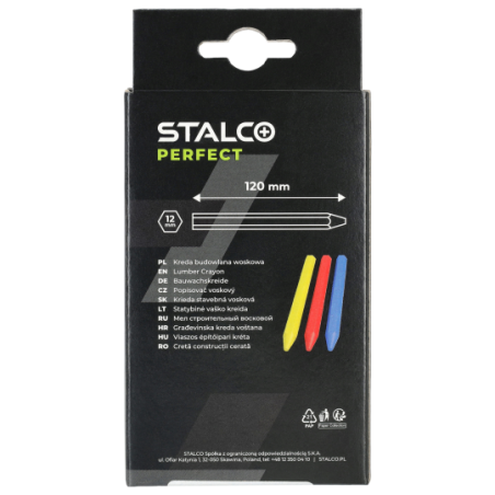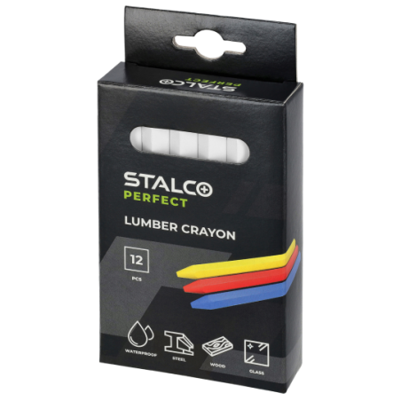Kreda budowlana woskowa to uniwersalne akcesorium kreślarskie. Produkt znajduje zastosowanie przy pracach budowlanych, warsztatowych, a nawet przy majsterkowaniu. Sprawdza się przy pisaniu, kreśleniu i znakowaniu różnych materiałów jak drewno, beton czy kamień. Sprawdzi się przy podłożach suchych i mokrych. Kreda budowlana woskowa STALCO Perfect jest wodoodporna. Ma sześciokątny kształt przekroju, co sprawia, że chwyt będzie pewniejszy. Oferowana jest w czterech kolorach: białym, żółtym, czerwonym i niebieskim. To umożliwia nanoszenie różnych linii i znaków na jednym elemencie przy zachowaniu przejrzystości