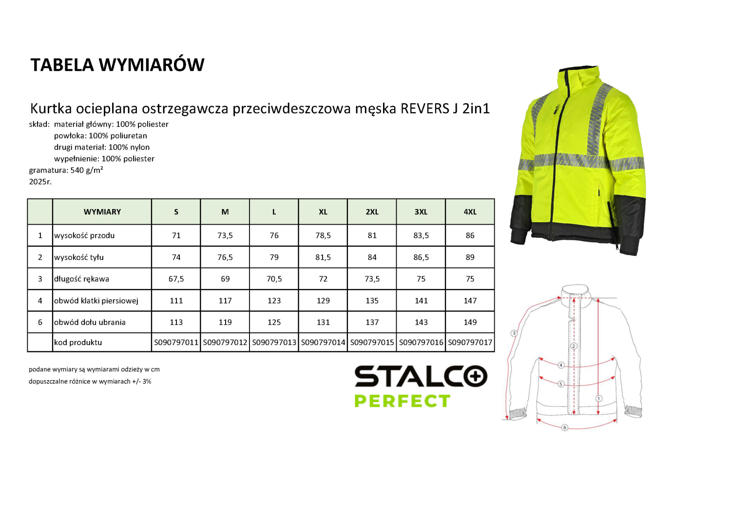 Kurtka ocieplana ostrzegawcza przeciwdeszczowa męska REVERS J 2in1 STALCO PERFECT S żółty STALCO PERFECT S090797011