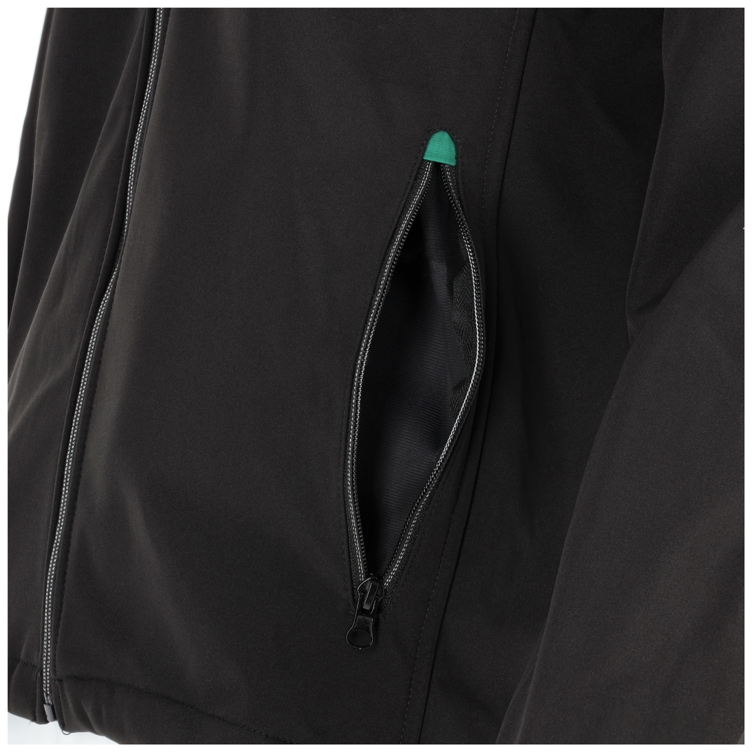 W softshellu zastosowano cztery kieszenie o różnej wielkości do przechowywania drobnych przedmiotów. Dwie z nich znajdują się w okolicach pasa, a po jednej umieszczono na piersi i lewym rękawie. Wszystkie kieszenie są zapinane na zamek, dlatego świetnie chronią zawartość.