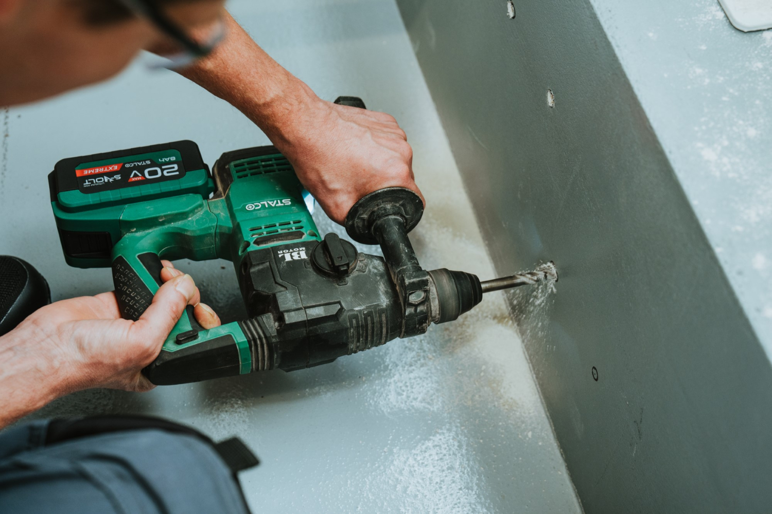 W czasie prac remontowych niezastąpiona okaże się Młotowiertarka Akumulatorowa RHS20-18BL. Narzędzie przeznaczone jest do prowadzenia prac wykończeniowych i monterskich w miejscach, gdzie dostęp jest trudny. Zasilanie narzędzia zapewnia akumulator o pojemności 4 Ah, który daje funkcjonalność wiercenia i udaru. Młotowiertarka Akumulatorowa STALCO obsługuje wiertła i dłuta wyposażone w uchwyt SDS Plus. Może wiercić w betonie do średnicy 18mm, drewnie do średniy 20 mm i stali do 13 mm. Sprawdza się również przy trasowaniu podłoża i zbijaniu płytek ceramicznych. Jest wyposażona w silnik bezszczotkowy i mocny mechanizm udarowy, który ułatwia prowadzenie prac nawet z bardzo twardymi materiałami. Młotowiertarka Akumulatorowa ma regulację prędkości na włączniku, a także funkcję zmiany kierunku obrotów. Ponadto zmiana trybu pracy za pomocą włącznika jest łatwa i intuicyjna.