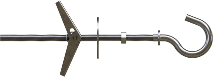 Kotwa rozprężna typu PARASOLKA z hakiem okrągłym została stworzona z myślą o montażu do płyt wiórowych. Sprawdza się zarówno przy mocowaniu na wylot do pojedynczej płyty, jak i do materiałów z pustymi przestrzeniami wewnątrz. Produkt można zastosować do mocowania lekkich elementów dekoracyjnych, instalacyjnych, a także konstrukcji pomocniczych.