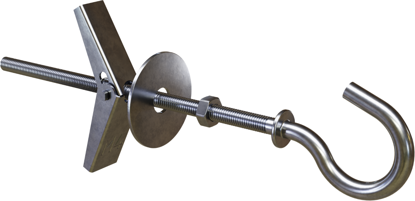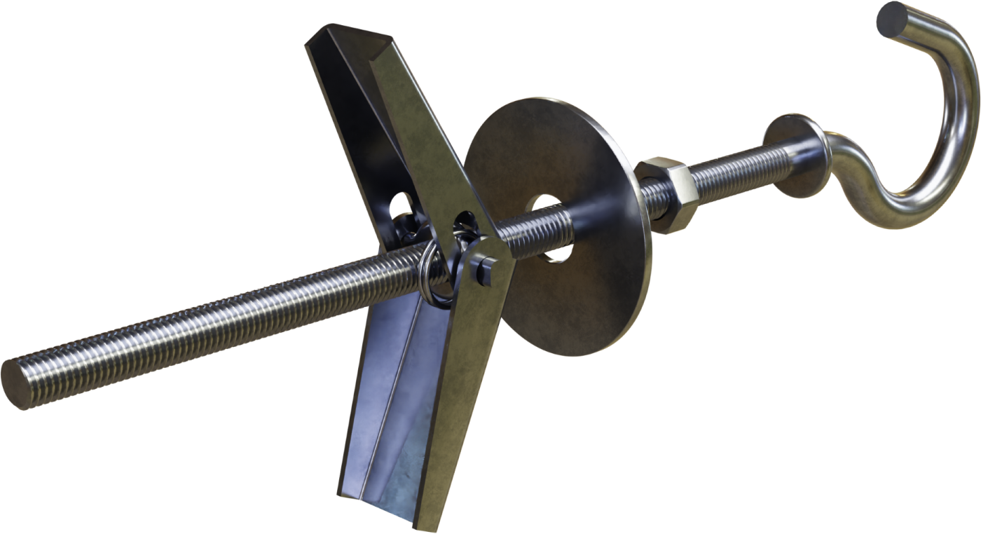 Kotwa rozprężna typu PARASOLKA z hakiem okrągłym została stworzona z myślą o montażu do płyt wiórowych. Sprawdza się zarówno przy mocowaniu na wylot do pojedynczej płyty, jak i do materiałów z pustymi przestrzeniami wewnątrz. Produkt można zastosować do mocowania lekkich elementów dekoracyjnych, instalacyjnych, a także konstrukcji pomocniczych.