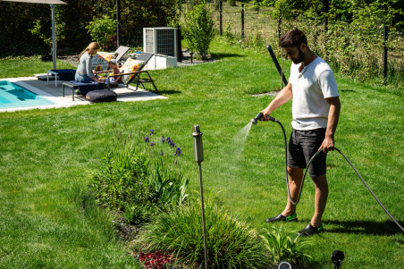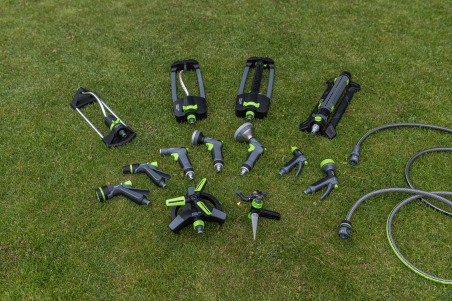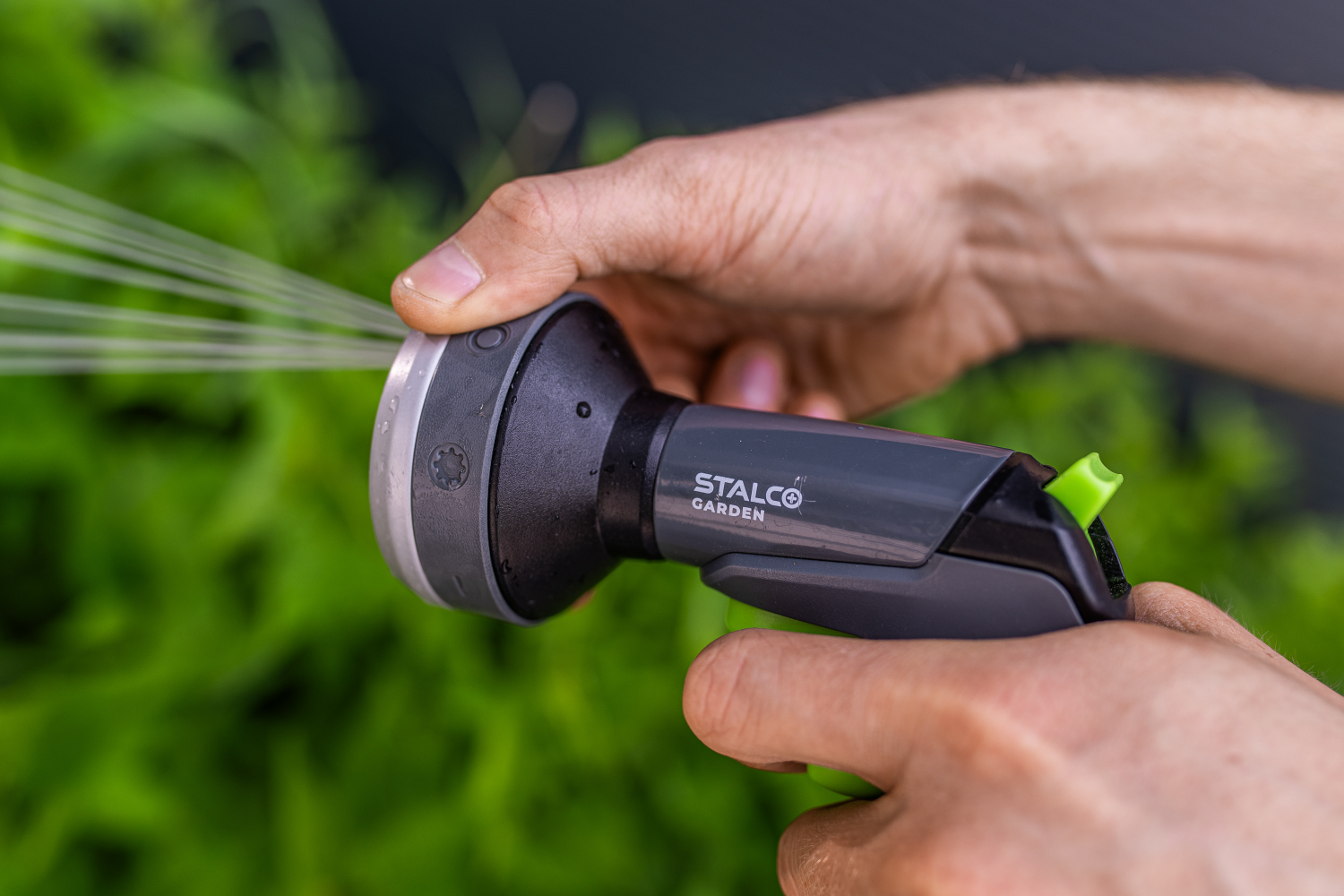 Ręczne urządzenie zraszające, wielofunkcyjne, o uniwersalnym zastosowaniu. W ogrodzie do podlewania i zraszania roślin.