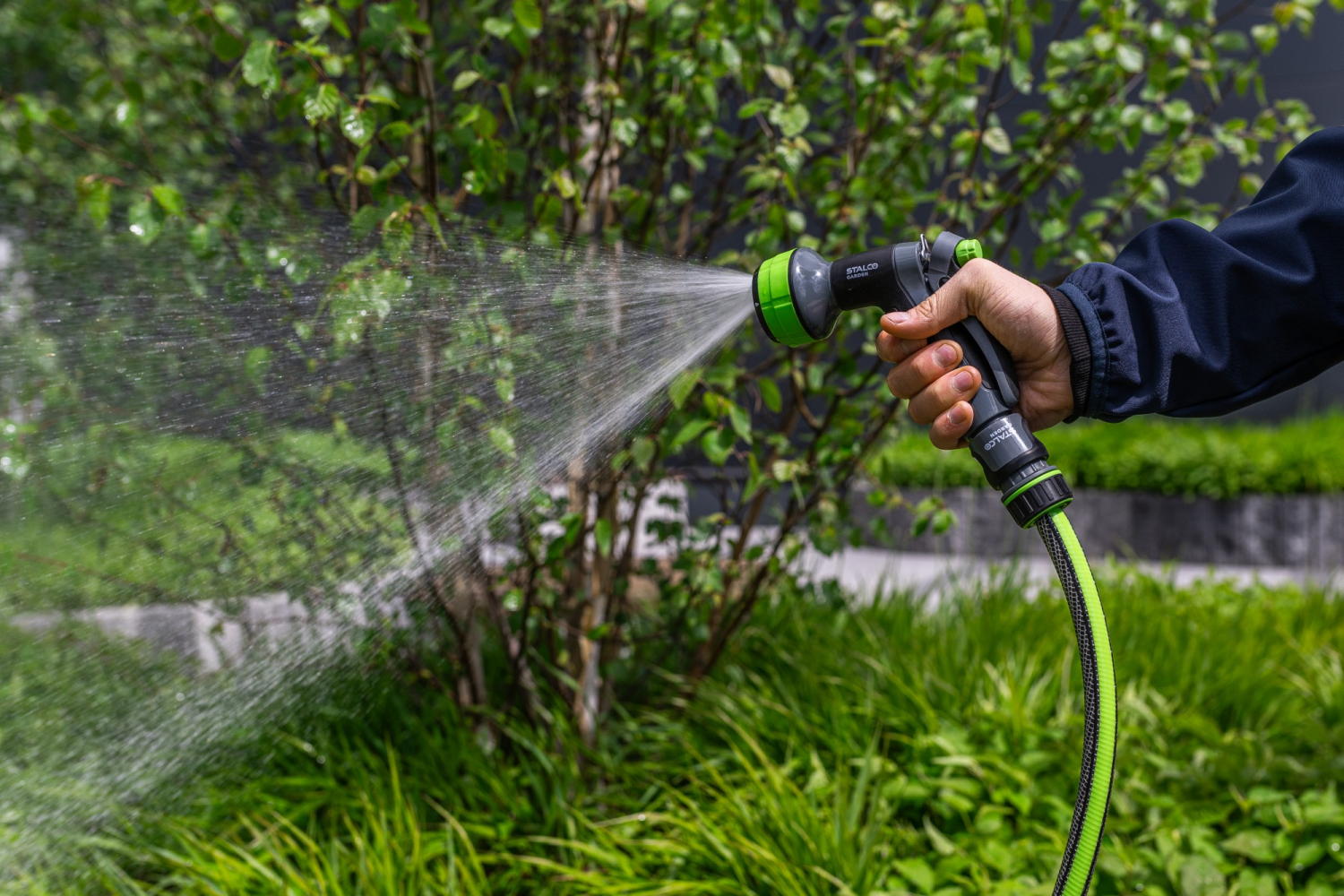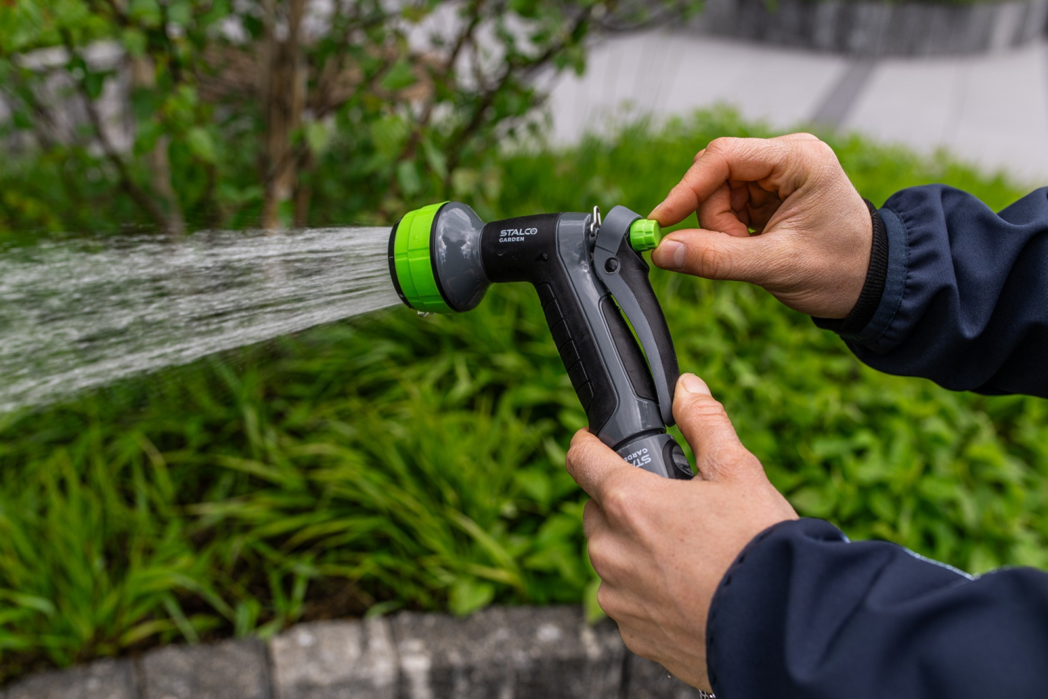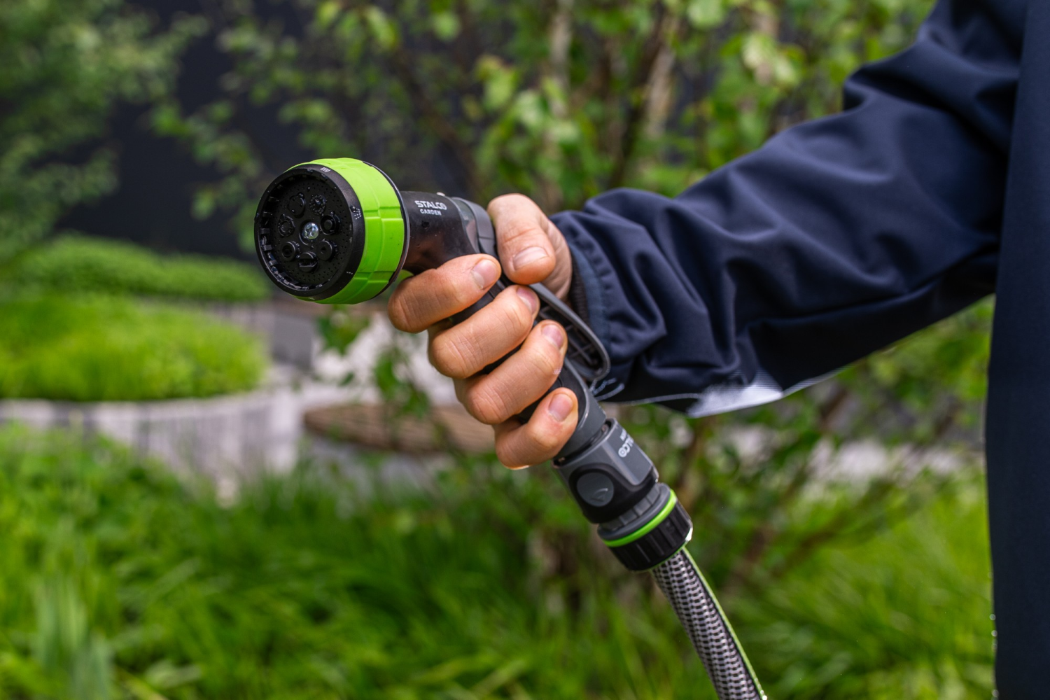 Ręczne urządzenie zraszające, wielofunkcyjne, o uniwersalnym zastosowaniu. W ogrodzie do podlewania i zraszania roślin.