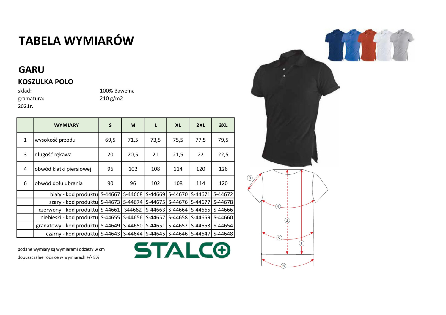 KOSZULKA POLO GARU to elegancka, o klasycznym kroju koszulka kołnierzykiem, która nadaje się zarówno jako element ubioru warstwowego jak i do odzieży typu casual. Polówkę można nosić podczas wykonywania prac na zewnątrz i wewnątrz budynków. Koszulka polo została wykonana z naturalnej dzianiny bawełnianej o gramaturze 210 g/m2. Deseń ma ciekawą fakturę pique, która potocznie jest określana jako lakosta. Polówka wyróżnia się elegancją i poprawia prezencję użytkownika, a jednocześnie jest bardzo wygodna.