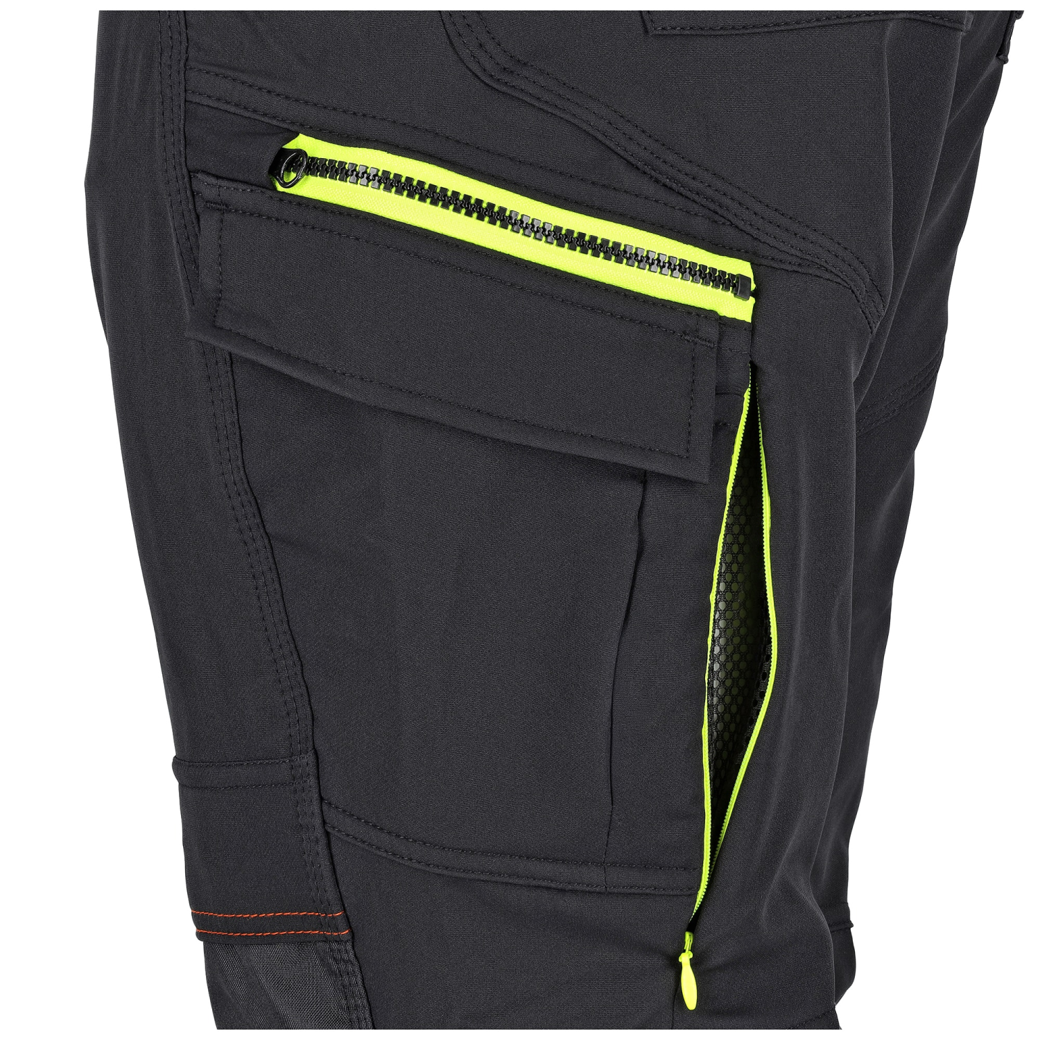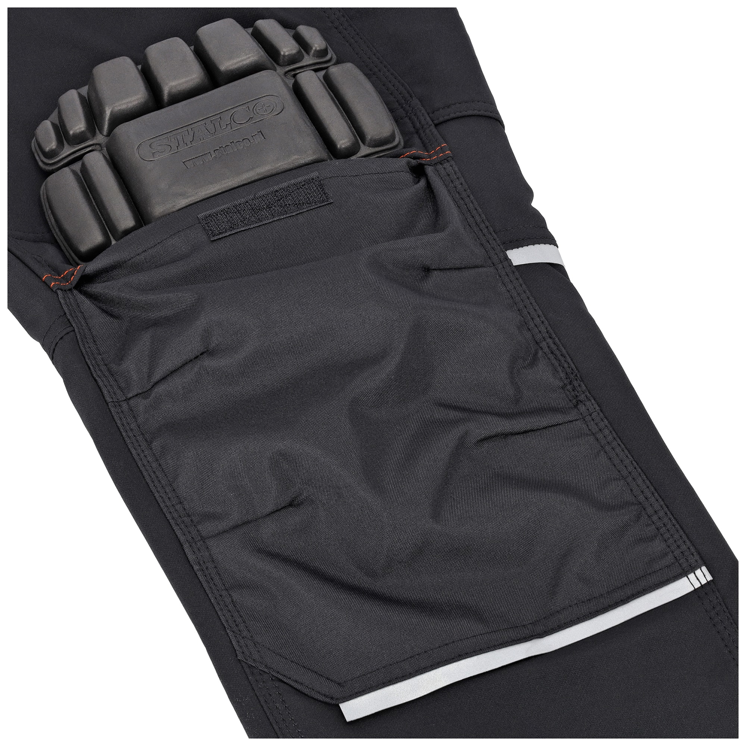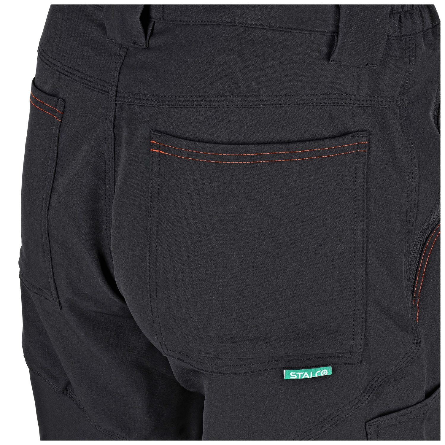 Funkcjonalne kieszenie W czasie wykonywania pracy, niewielkie przedmioty i narzędzia można umieścić w funkcjonalnych kieszeniach. Nie jest ich dużo ze względu na trekkingowy charakter spodni, ale jest wszystko, co niezbędne do pracy. Po bokach kieszeń na narzędzia, duża z klapką i nad nią 2ga na zamek, do przechowywania cennych przedmiotów. W obrębie pasa są 2 naszywane kieszenie z tyłu i 2 bardzo pojemne kieszenie z przodu, zapinane na zamek. W pracy w wymuszonych pozycjach są niezastąpione kieszenie na kolanach na wkładki piankowe, z wytrzymałego na rozdarcia oxfordu.