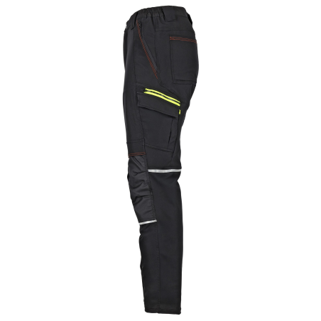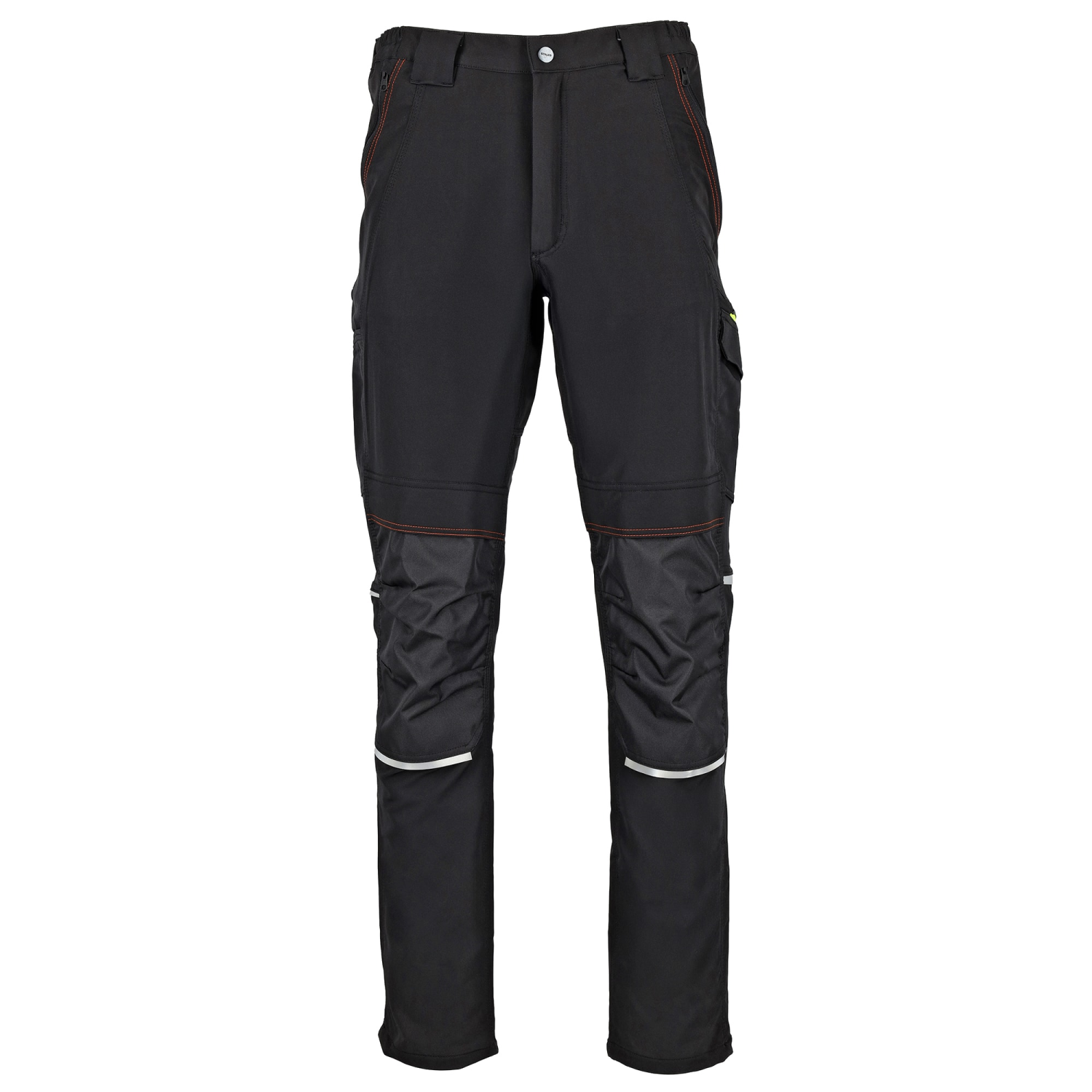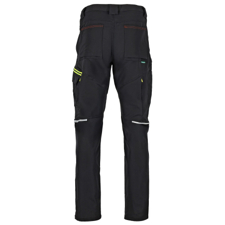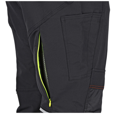 Wentylacja i bezpieczeństwo Oddychające spodnie posiadają dodatkowo otwory wentylacyjne rozpinane na zamek na tyle z wszytą siateczką. Pozwalają one na wypuszczanie nadmiaru wilgoci i ciepła. Na nogawkach z każdej strony są wszyte odblaski, które podnoszą widoczność pracownika i bezpieczeństwo w pracy.