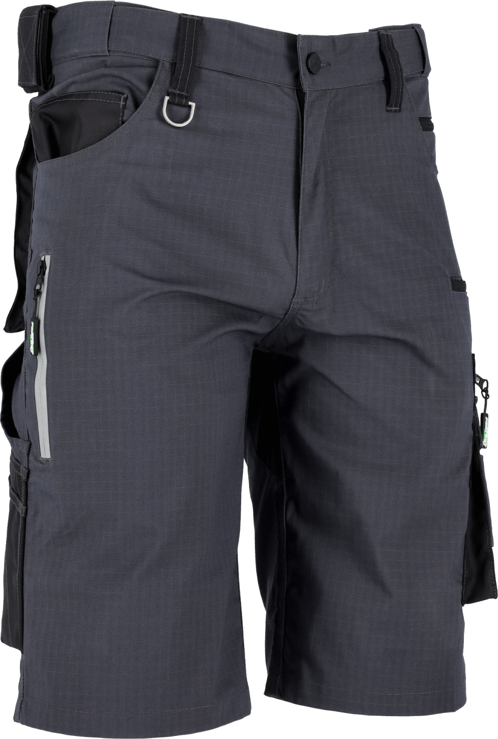 W szortach zastosowano kilka typów kieszeni, które nadają im sporej funkcjonalności. Wokół pasa znalazły się cztery kieszenie, z czego dwie są zapinane na zamek, a jedna na rzep. Ponadto umieszczono w nich kieszenie na telefon, długopisy, klucze, a także drewnianą miarę. Wszystkie kieszenie są tylko częściowo przyszyte do nogawek, co poprawia komfort i zapobiega ich zerwaniu w czasie kucania w pracy.