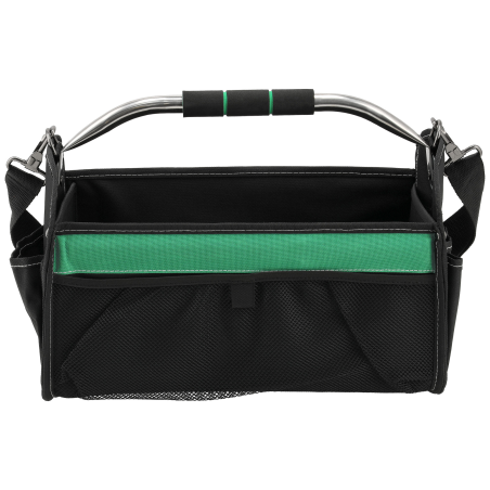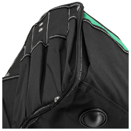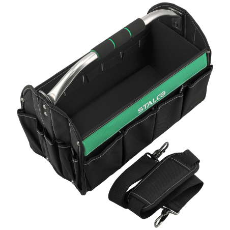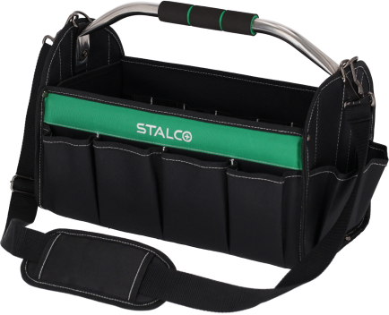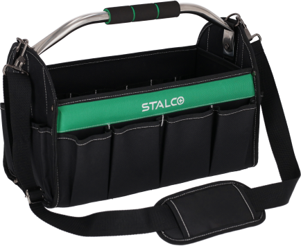 Torba narzędziowa TNS30 to element wyposażenia każdego mechanika i serwisanta. Pozwala na przenoszenie narzędzi i przechowywanie ich w porządku. Elastyczne ścianki torby są wykonane z tworzywa poliestrowego 600 D. Materiał zapewnia ochronę przed przebiciem, a jednocześnie pozwala swobodnie rozkładać ciężar wewnątrz. Wszystkie newralgiczne łączenia materiału zostały wzmocnione podwójnym szwem. Torba narzędziowa TNS30 STALCO jest bardzo funkcjonalna i zawiera wiele przegród do przechowywania przedmiotów. Wewnątrz znajduje się duża komora i kilka mniejszych kieszeni. Na dnie umieszczono dodatkowe wzmocnienie, które zapewnia większą stabilność. Na zewnątrz zaprojektowano 11 kieszeni o różnych rozmiarach do przechowywania mniejszych narzędzi. Do przenoszenia torby służy uchwyt z miękkim wykończeniem rączki. Można też zawiesić ją na ramieniu za pomocą paska regulowanego w zakresie od 60 cm do 122 cm.