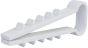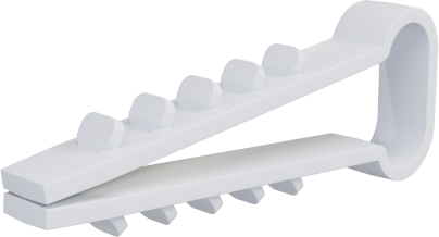 Uchwyt montażowy do przewodów płaskich to produkt przydatny przy pracach wykończeniowych. Do jego produkcji wykorzystano tworzywo polipropylenowe o dobrych parametrach wytrzymałościowych. Uchwyt ma kształt pozwalający na mocowanie przewodów do podłoża, a obustronne wypustki zapewniają stabilne osadzenie wewnątrz otworu.