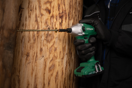 Zakrętarka Udarowa jest funkcjonalnym narzędziem przydatnym w czasie wykonywania prac monterskich. Służy do obsługi połączeń śrubowych, a także wiercenia. Silnik może pracować na wysokim momencie obrotowym, a do dopasowania go do charakteru pracy służy czterostopniowa regulacja. Zakrętarka Udarowa STALCO ma ćwierćcalowy uchwyt narzędziowy typu HEX, którym można obsługiwać głowice robocze, nasadki farmerskie lub inne akcesoria. Taka konstrukcja sprawdza się głównie przy bardziej precyzyjnych pracach warsztatowych lub przy robotach dekarskich. Przy pracy na wysokości przydaje się także poręczny uchwyt i niewielka waga narzędzia. Zakrętarka Udarowa jest obsługiwana akumulatorem litowo-jonowym, a dzięki bezszczotkowej konstrukcji silnika, bateria wystarcza na długi czas. Narzędzie ma poręczną konstrukcję i wagę 1,2 kg, dlatego z jego pomocą można wygodnie prowadzić prace nawet w wymuszonej pozycji. Maszyna pasuje do systemu akumulatorowego S-Volt.