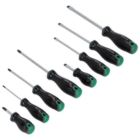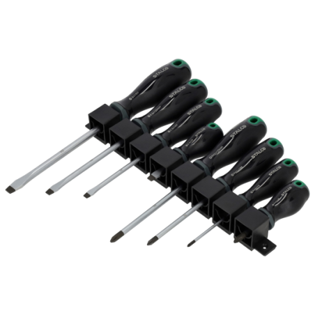 Kompletny zestaw wkrętaków zaprojektowany do różnorakich zadań, znajdzie zastosowanie w mechanice i ślusarstwie, zestaw wyposażony w poręczny uchwyt który można przykręcić do tablicy narzędziowej, każdy z wkrętaków posiada namagnesowaną końcówkę co dodatkowo zwiększa komfort pracy .
